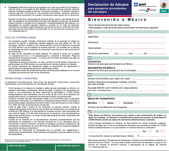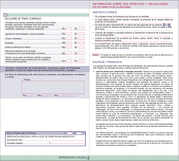 24. Declaración de aduana para pasajeros procedentes del extranjero (español).