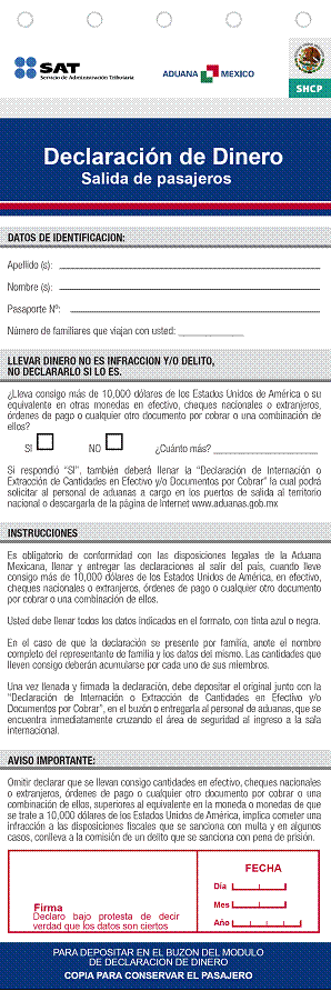 25. Declaración de dinero salida de pasajeros (español).