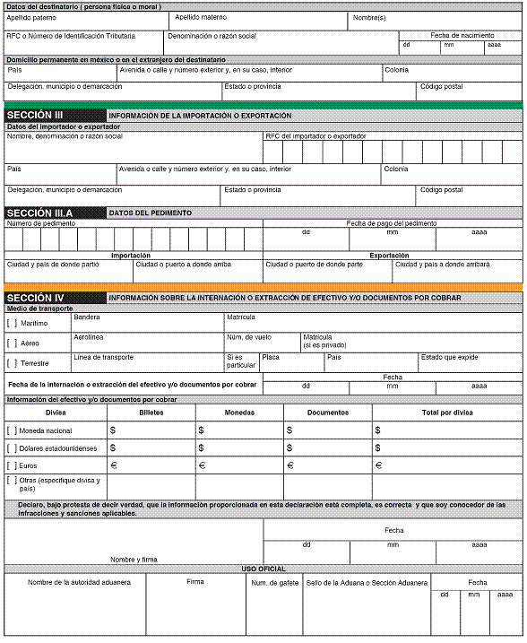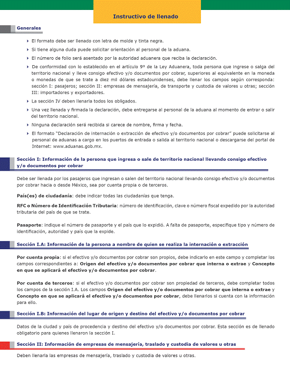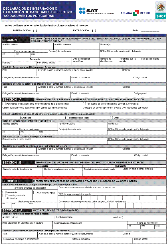 26. Declaración de internación o extracción de cantidades en efectivo o documentos por cobrar.