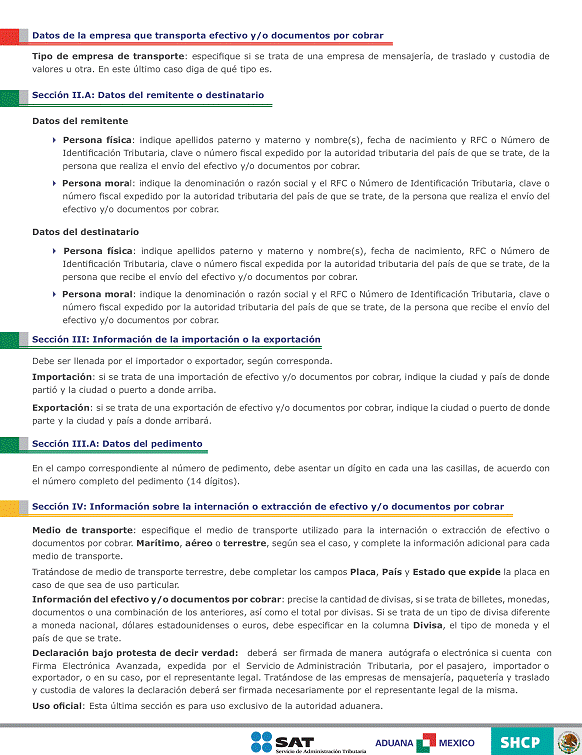 18. Boleta Aduanal (instructivo de llenado).