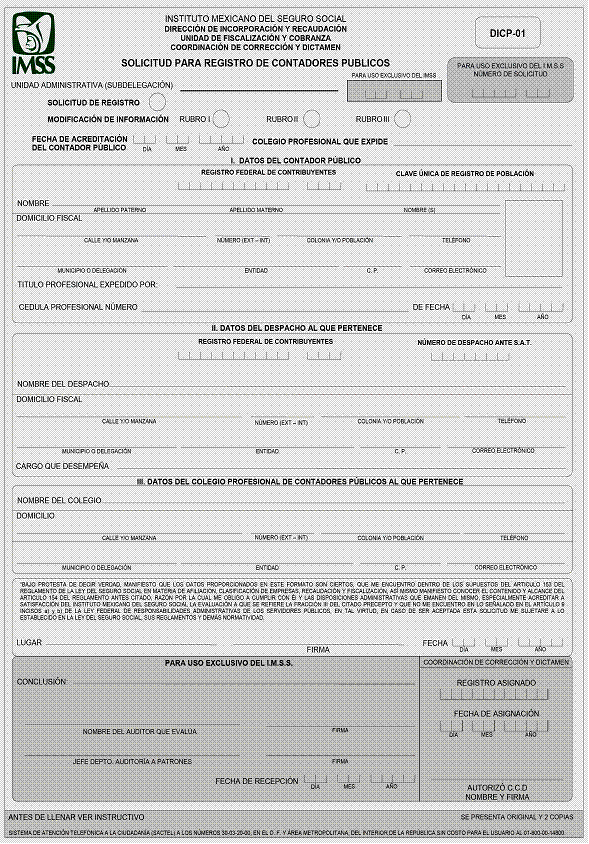 1. Cualquier modificación a los datos contenidos en la solicitud, deberá comunicarse dentro de los diez días hábiles siguientes a la fecha en que ocurra, para lo cual se utilizará este formato señalando con una marca “X” el círculo del rubro a modificar (Rubro I, Rubro II, Rubro III) llenando a su vez los recuadros con los datos actualizados (I datos del contador público; II datos del despacho; III datos del Colegio Profesional de Contadores Públicos al que pertenece).