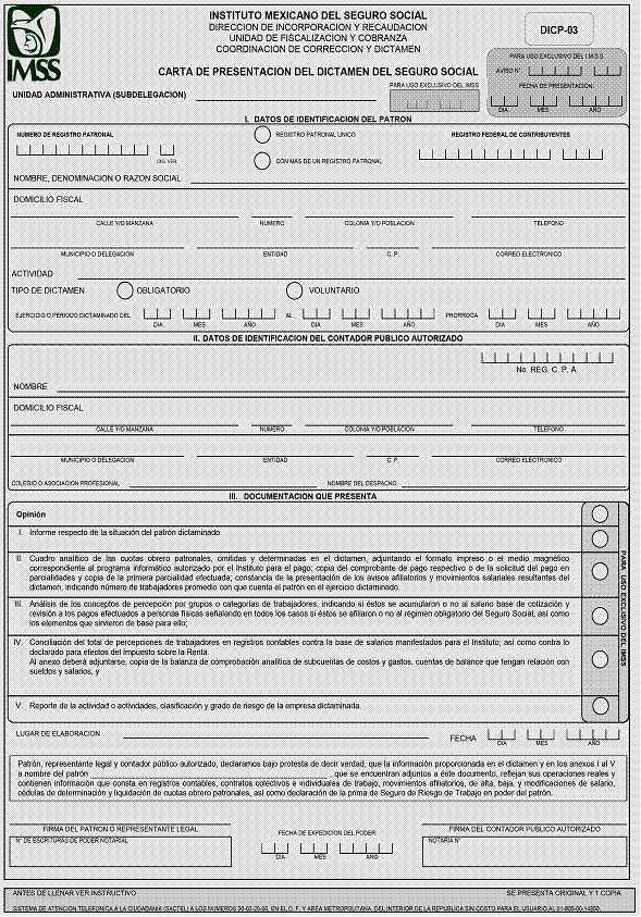 LLENADO DEL AVISO DE DICTAMEN PARA EFECTOS DEL SEGURO SOCIAL