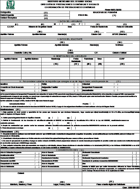 Los datos del formato Solicitud de Pensión Datos Del asegurado: CURP Número de