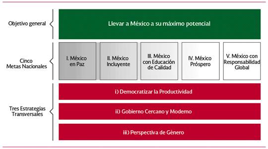 PGCM: Programa para un Gobierno Cercano y Moderno. El Plan Nacional de Desarrollo 2013-2018 (PND) estableció la estrategia transversal “Un Gobierno Cercano y Moderno”; con el objetivo de contar con una administración pública orientada a resultados, que optimice el uso de los recursos públicos, utilice las nuevas tecnologías de la información y comunicación y fortalezca la transparencia y rendición de cuentas. Para cumplir con este objetivo se implementó el “Programa para un “Gobierno Cercano y Moderno 2013-2018”, el cual contiene cinco grandes objetivos que ayudarán a establecer por primera vez en la Administración Pública Federal una Gestión para Resultados coordinada y transversal.