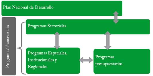 De conformidad con los artículos 25 y 26 Constitucionales, corresponde al Estado la rectoría del desarrollo nacional, garantizando que sea integral y sustentable, que vele por el fortalecimiento de la soberanía nacional y su régimen democrático, y que a través del fomento del crecimiento económico y una distribución equitativa del ingreso y la riqueza, se llegue al pleno ejercicio de la libertad y el respeto de las garantías consagradas en la Constitución Política de los Estados Unidos Mexicanos. Asimismo, de los artículos 22 y 23 de la Ley de Planeación se desprende que el Plan Nacional de Desarrollo indicará los distintos programas sectoriales, institucionales, regionales y especiales que coadyuvarán al desarrollo integral del país.