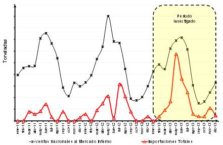 c. añadió que el incremento de las importaciones obedeció a la imposibilidad de la producción nacional para abastecer la totalidad de las necesidades de un mercado creciente, ya que también se incrementaron las importaciones de otros orígenes. Para sustentar su argumento presentó: i) datos sobre importaciones de sulfato de amonio obtenidas del SIAVI para los años de 2010 a 2013; ii) cifras sobre superficie cosechada en México en los mismos años, e iii) información sobre producción de los principales cultivos (por ejemplo, pastos, alfalfa, maíz, sorgo y caña de azúcar) en los que se utiliza el sulfato de amonio, según datos de la SAGARPA.