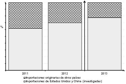D. Importaciones totales de sulfato de amonio, originarias de los Estados Unidos, de 2011 a 2013.