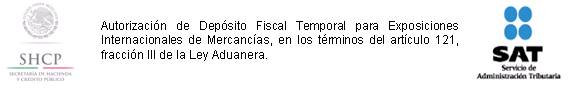 1. Autorización de Depósito Fiscal Temporal para Exposiciones Internacionales de Mercancías, en los términos del artículo 121, fracción III de la Ley Aduanera.