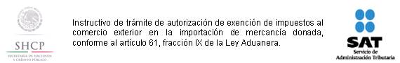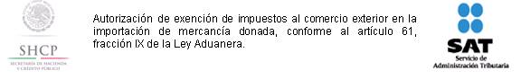 2. Autorización de exención de impuestos al comercio exterior en la importación de mercancía donada, conforme al artículo 61, fracción IX de la Ley Aduanera.