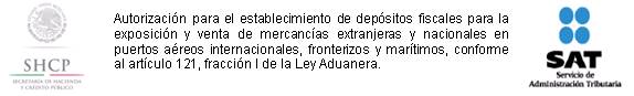 4. Autorización para el establecimiento de depósitos fiscales para la exposición y venta de mercancías extranjeras y nacionales en puertos aéreos internacionales, fronterizos y marítimos, conforme al artículo 121, fracción I de la Ley Aduanera.