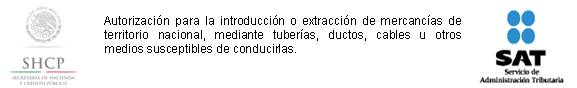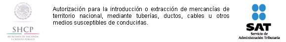 5. Autorización para la introducción o extracción de mercancías de territorio nacional, mediante tuberías, ductos, cables u otros medios susceptibles de conducirlas.