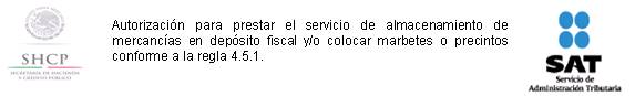 6. Autorización para prestar el servicio de almacenamiento de mercancías en depósito fiscal y/o colocar marbetes o precintos conforme a la regla 4.5.1.