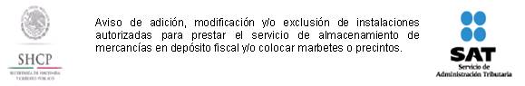 9. Aviso de adición, modificación y/o exclusión de instalaciones autorizadas para prestar el servicio de almacenamiento de mercancías en depósito fiscal y/o colocar marbetes o precintos.