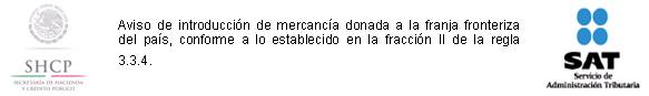 14. Aviso de introducción de mercancía donada a la franja fronteriza del país, conforme a lo establecido en la fracción II de la regla 3.3.4.