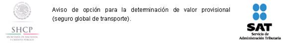 17. Aviso de opción para la determinación de valor provisional (seguro global de transporte).