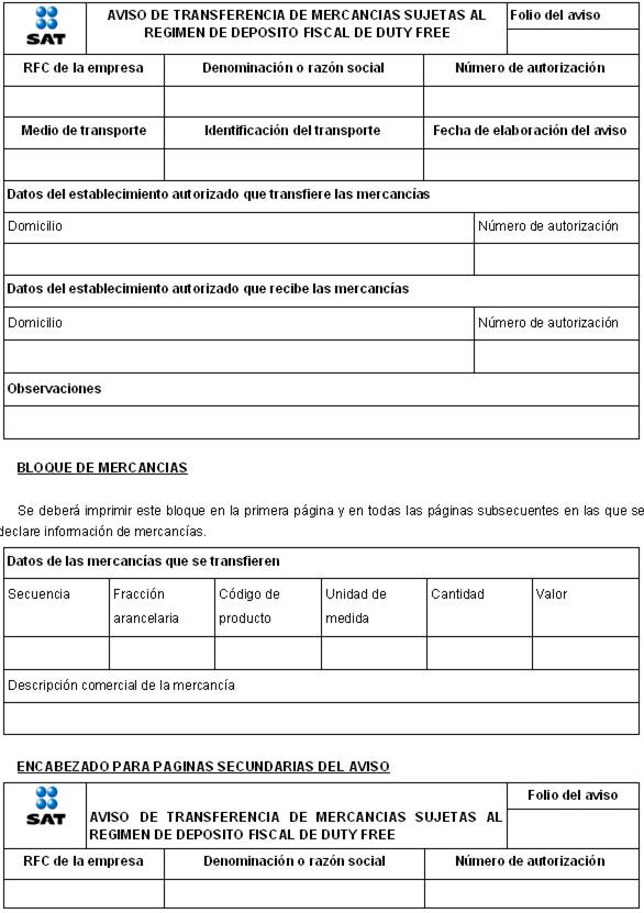 22. Aviso de transferencia de mercancías sujetas al régimen de depósito fiscal de Duty Free.