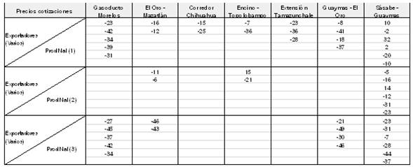 c. de los 18 proyectos de gasoductos que se prevén hasta 2018 en el mercado mexicano, ninguno ha sido cancelado o ajustado; más aún, se agregaron proyectos tales como el de “Nueces-Brownsville”, “San Isidro-Samalayuca”, así como los ramales “Villa de Reyes”, “Hermosillo” y “Topolobampo”, que aumentan el atractivo del mercado mexicano como destino para las exportaciones que se investigan.