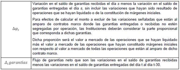 a) El flujo acumulado de garantías neto, que son las variaciones en el saldo de garantías recibidas menos las variaciones en el saldo de garantías entregadas, que resulte de los cambios en la valuación de las operaciones con instrumentos financieros derivados, sin incluir las variaciones de los saldos de garantías entregadas o recibidas que resulten de la constitución de márgenes iniciales o de la liquidación de operaciones, más