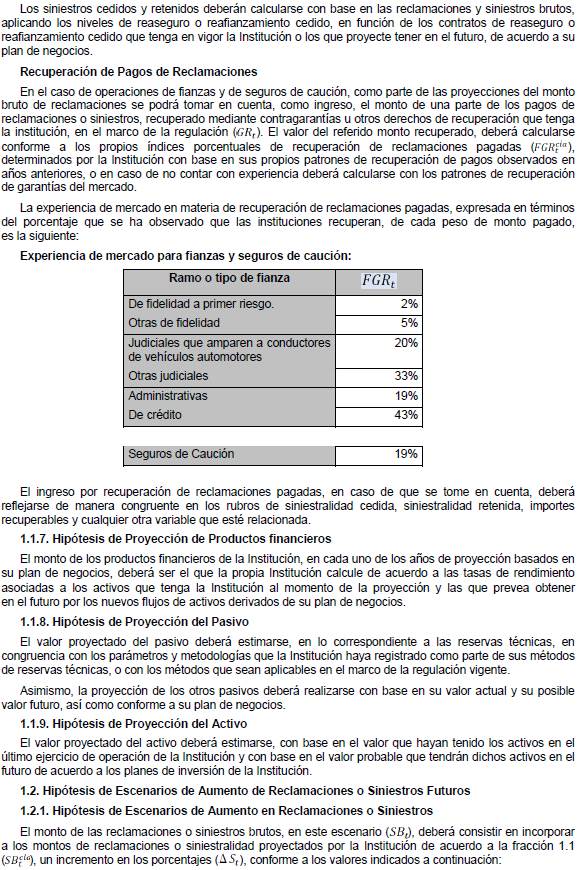 Este escenario consistirá en analizar la suficiencia de los fondos propios admisibles, realizando la proyección bajo las hipótesis señaladas en la fracción 1.1. y suponiendo pérdidas originadas por insolvencia del reasegurador o reafianzador, conforme a las hipótesis señaladas en la fracción 3.