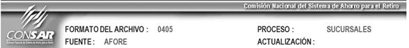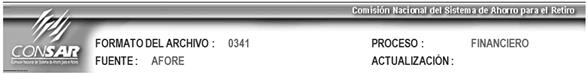 Los cuáles serán conforme a la Clave de Entidad AFORES que se reporta conforme al catálogo de entidades del Catálogo General Apartado Circular 19 vigente, Constante = “001”. |