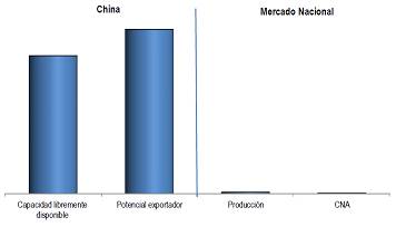 Mercado nacional vs capacidad libremente disponible y potencial exportador de China