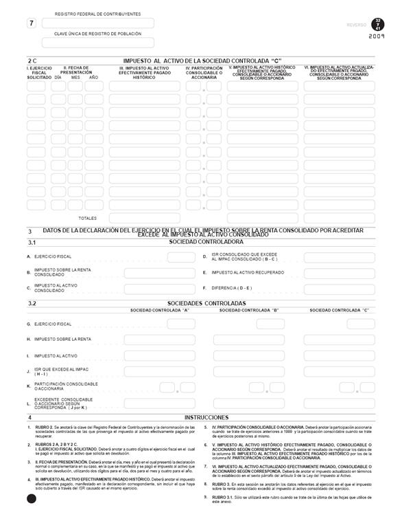 Impuesto al activo pagado en ejercicios anteriores. (Controladoras y Controladas). 21.6 x 27.9 cms./Carta. Impresión negra en fondo blanco. Esta forma es de libre impresión.