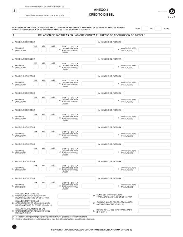 Anexo 9 BIS de las formas oficiales 32 y 41