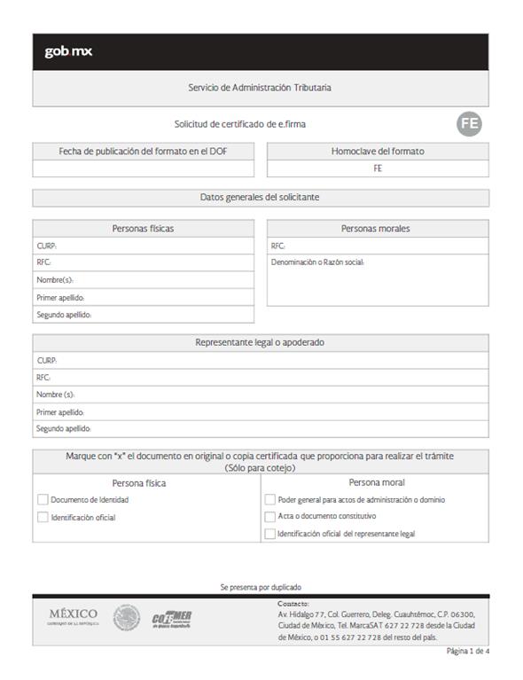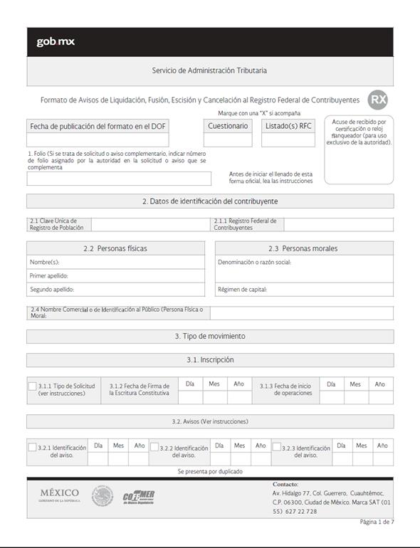 Contenido A. Formas oficiales aprobadas. 1. Código 2. Ley del ISR 3. Ley del IEPS 4. Ley Federal del ISAN 5. Ley del IVA 6. Petróleos Mexicanos y sus Organismos y Subsidiarios 7. Ley de Ingresos sobre Hidrocarburos B. Formatos, cuestionarios, instructivos y catálogos aprobados. 1. Constancia de Situación Fiscal. a) Personas morales. b) Personas físicas. 1.1. Cédula de Identificación Fiscal. 2. Modelo de escrito de “Carta de conformidad de los Sorteos”. 3. Cédula de calificación de riesgo. C. Listados de información que deberán contener las formas oficiales que publiquen las entidades federativas. 1. Declaraciones de pago. |