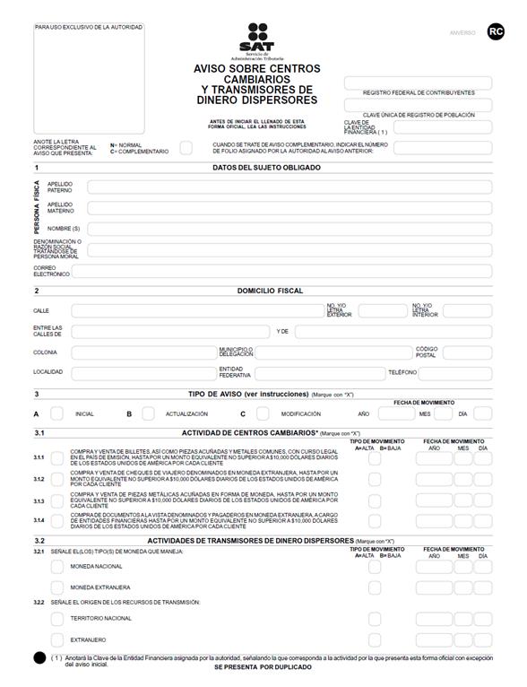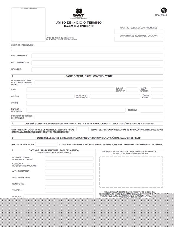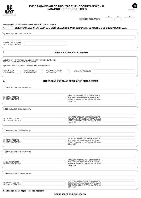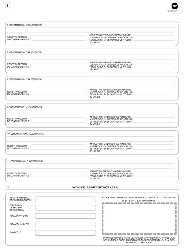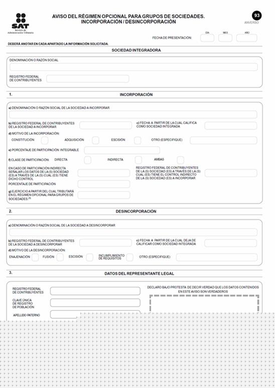 Aviso para presentar dictamen fiscal de enajenación de acciones. 21.6 x 34 cms./Oficio. Impresión negra en fondo blanco. Esta forma es de libre impresión.