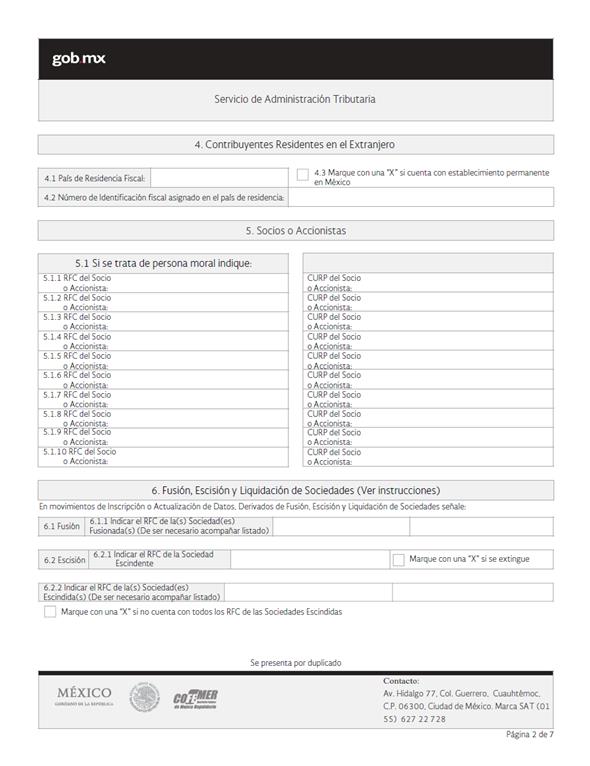 Relación de socios, accionistas o asociados residentes en el extranjero. *Programa electrónico www.sat.gob.mx