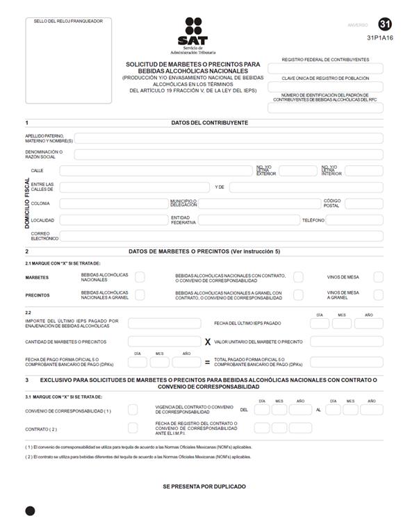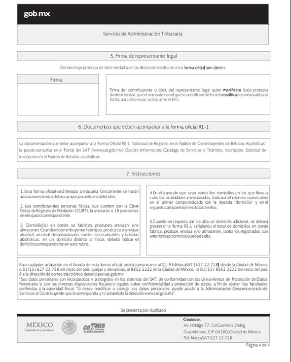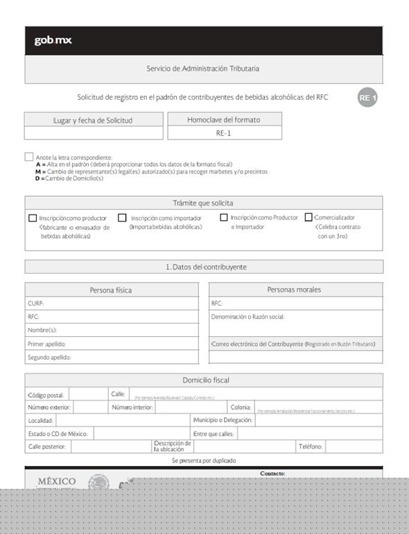 Solicitud de registro en el padrón de contribuyentes de bebidas alcohólicas del RFC. 21.6 x 27.9 cms./Carta. Impresión negra en fondo blanco. Esta forma es de libre impresión.
