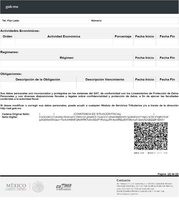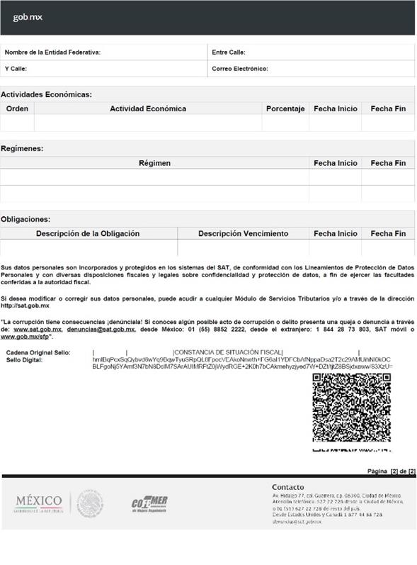 Información sobre situación fiscal. *Programa electrónico www.sat.gob.mx |