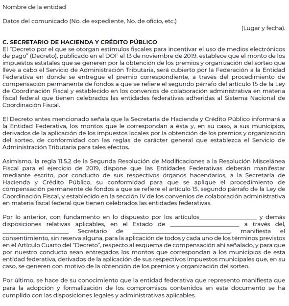 2. Modelo de escrito de “Carta de conformidad de los Sorteos”.