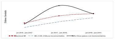 175. Adicionalmente, la Solicitante presentó el comportamiento de las ventas del producto similar de fabricación similar en el mercado interno. La Secretaría observó que el desempeño de los volúmenes y de los precios se reflejó en una caída acumulada de los ingresos por ventas en el mercado interno (medidos en pesos) del 41% en el periodo analizado: disminuyeron 17% en el periodo julio de 2017-junio de 2018 y 15% en el periodo investigado.