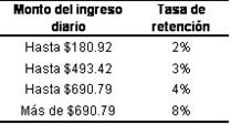 12.2.6. Para los efectos de lo dispuesto en el artículo 113-C, párrafo primero, fracción IV, en relación con el 113-A, de la Ley del ISR, las personas morales residentes en México o residentes en el extranjero con o sin establecimiento permanente en el país, así como las entidades o figuras jurídicas extranjeras obligadas a retener y enterar el ISR a los contribuyentes personas físicas con actividades empresariales que enajenen bienes o presten servicios a través de Internet, mediante plataformas tecnológicas, aplicaciones informáticas y similares, podrán optar por calcular las retenciones del ISR de cada contribuyente por periodos diarios, aplicando al monto total de ingresos diarios efectivamente percibidos por el contribuyente las tasas de retención previstas en las siguientes tablas: