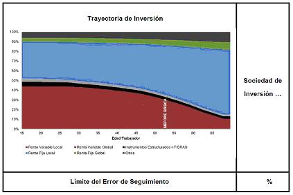 En el caso de las Sociedades de Inversión Adicionales se deberá mostrar las inversiones realizadas por las Sociedades de Inversión. v. Para el caso de las Sociedades de Inversión Básicas, se deberá incluir el cuadro que se muestra abajo, en el cual se deberá señalar el límite de Desviación Máxima que podrá tener la cartera de inversión con respecto a la Trayectoria de Inversión. Comparación ponderaciones Trayectoria de Inversión vs Sociedad de Inversión Básica