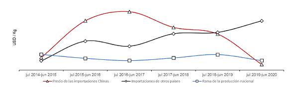 c. El precio de las importaciones potenciales de cables de acero originarias de China podría alcanzar márgenes significativos de subvaloración con respecto al precio nacional de 17% en el periodo julio de 2019-junio de 2020, lo que repercutiría de manera negativa en el precio interno, toda vez que obligaría a la rama de producción nacional a disminuir su precio en 21%, a fin de competir ante el incremento de la demanda por nuevas importaciones.
