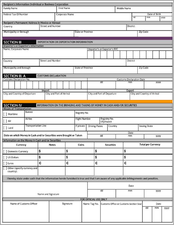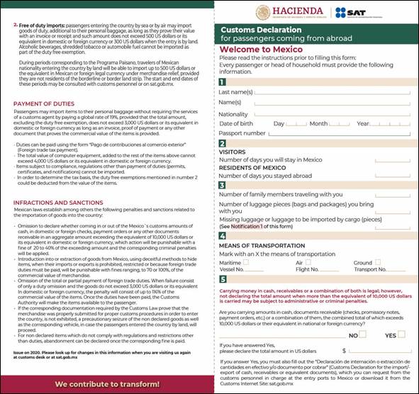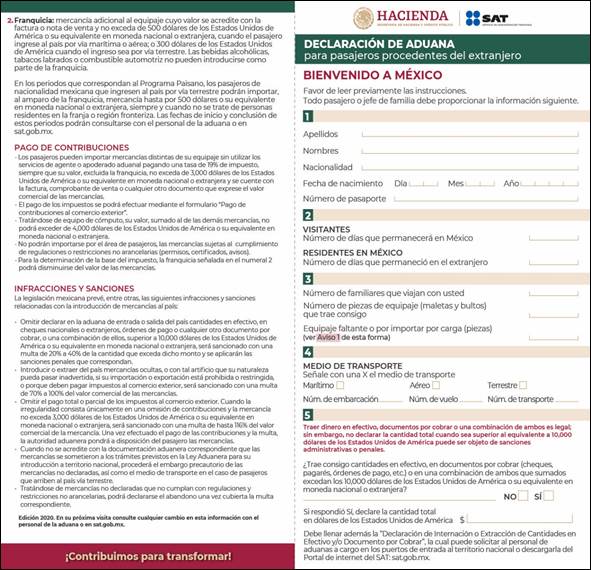 Aviso de introducción de mercancía donada a la franja fronteriza del país (Regla 3.3.6., apartado B). |