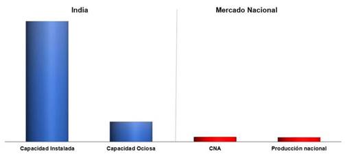 e. el potencial exportador de India (capacidad instalada menos consumo) fue mayor a la producción nacional y al tamaño del mercado mexicano, en más de 13 veces, en el periodo investigado.